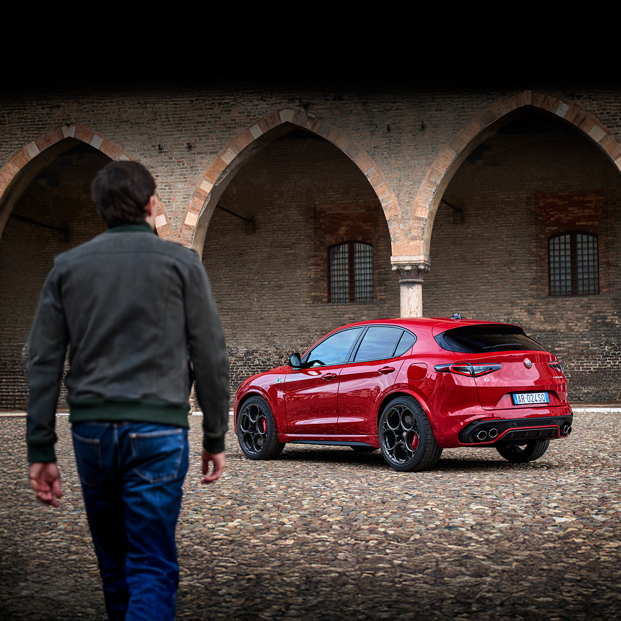 Der Stelvio Quadrifoglio ist 4701 mm lang, 2163 mm breit und 1689 mm hoch. Seine muskulöse Form spiegelt seinen kraftvollen Charakter wider. Der Kofferraum bietet ein Volumen von 525 Litern.