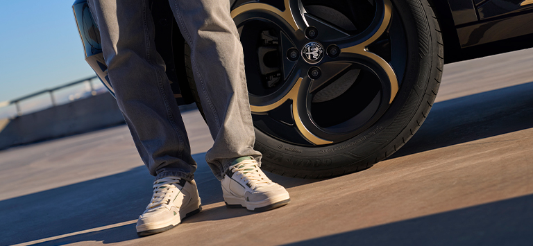 - Schwarze Bremssättel mit goldenem Alfa Romeo Schriftzug