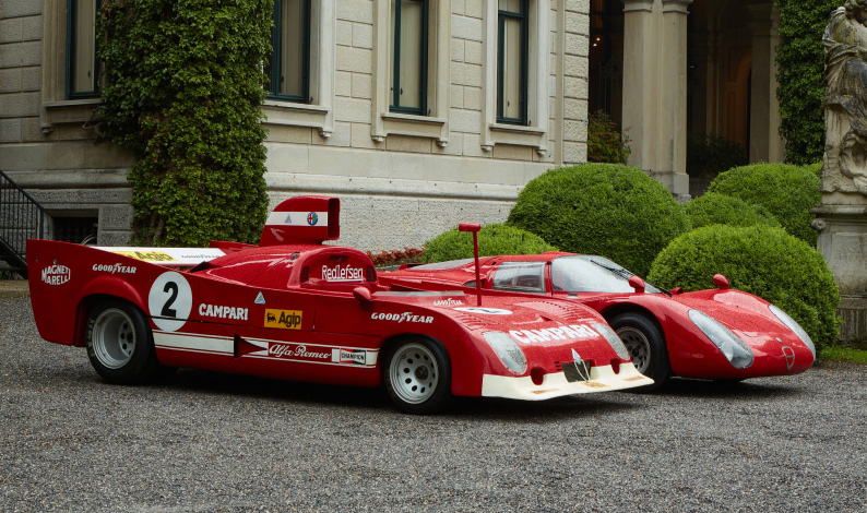 Im Rahmen des diesjährigen „Concorso d'Eleganza“ stand in der benachbarten Villa Erba der 100. Geburtstag des 24-Stunden-Rennens in Le Mans im Mittelpunkt. Alfa Romeo feierte bei dem berühmten Langstrecken-Klassiker in Frankreich vier Gesamtsiege und erzielte außerdem in verschiedenen Klassen weitere Erfolge. Anlass genug, sich mit zwei ikonischen Rennwagen an der Ausstellung in der Villa Erba zu beteiligen: dem Alfa Tipo 33/2 Daytona aus der Saison 1968 und dem Tipo 33 TT 12 von 1975. Der Alfa Romeo Tipo 33 markierte die Rückkehr der Marke in den internationalen Motorsport, wo Alfa Romeo 1950 und 1951 mit dem Rennwagen „Alfetta“ die beiden ersten jemals ausgerichteten Weltmeisterschaften in der Formel 1 gewonnen hatte. Nach einer Pause von rund zehn Jahren engagierte sich Alfa Romeo erneut im Motorsport. Einsatzteam war Autodelta. Das 1963 von Carlo Chiti gegründete Unternehmen entwickelte zunächst Rennwagen für Alfa Romeo und wurde ab 1966 offizielle Motorsportabteilung der Marke.