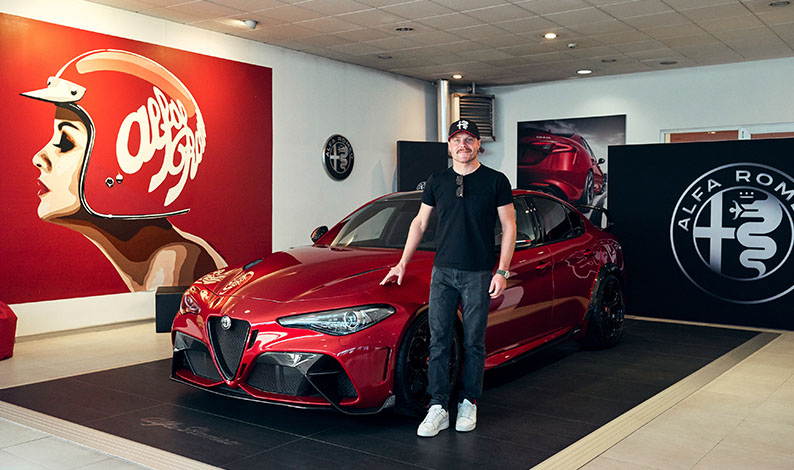 - Der Finne aus dem Alfa Romeo F1 Team holte seinen Privatwagen ab, der einer Sonderserie von nur 500 gefertigten Fahrzeugen entstammt.