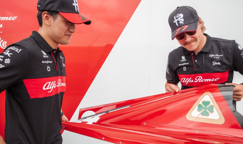 - Vom Centro Stile Alfa Romeo entworfenes Jubiläumslogo ziert die Boliden des Alfa Romeo F1 Teams, mit denen Valtteri Bottas und Zhou Guanyu am kommenden Wochenende beim Großen Preis von Kanada an den Start gehen.