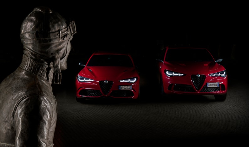 Die Topversionen von Alfa Romeo Giulia und Alfa Romeo Stelvio sind nach dem historischen Glücksbringer der Marke benannt: dem vierblättrigen Kleeblatt, im Italienischen Quadrifoglio. Seit dem Sieg bei der Targa Florio 1923 tragen alle Rennwagen von Alfa Romeo das Quadrifoglio auf der Karosserie.