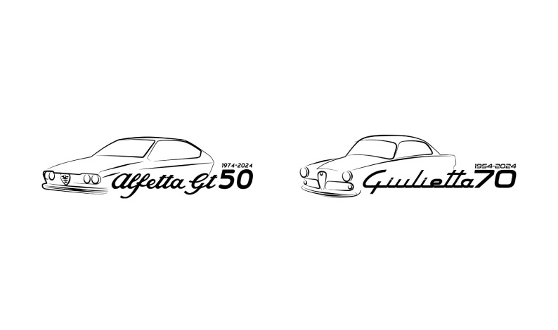 - Das Centro Stile Alfa Romeo würdigt die Jubiläen der beiden Coupés, Alfa Romeo Giulietta Sprint (70 Jahre) und Alfa Romeo Alfetta GT (50 Jahre) mit eigens entworfenen Logos, die im Rahmen der Feiern eingesetzt werden.